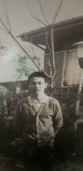 誰が撮ってくれたのかは忘れましたが、背景を見ると私の実家の庭で撮った写真でした。